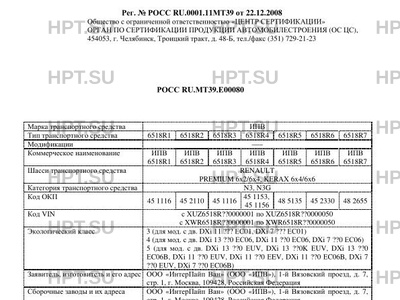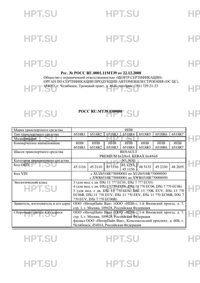 | Тип ТС | 6518R1; 6518R2; 6518R3; 6518R4; 6518R5; 6518R6; 6518R7 |