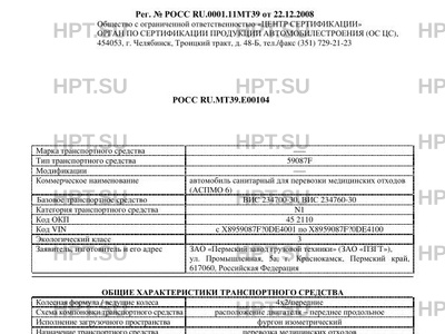 | Номер документа | РОСС RU.МТ39.E00104 |