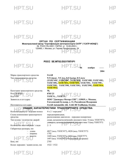 | Тип ТС | 9-5 Linear, 9-5 Arc, 9-5 Vector, 9-5 Aero (YS3E?45C, YS3E?49C, YS3E?45E, YS3E?4… |