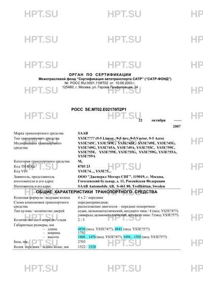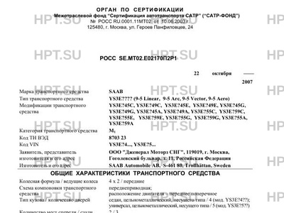 Тип ТС YS3E???? (9-5 Linear, 9-5 Arc, 9-5 Vector, 9-5 Aero)