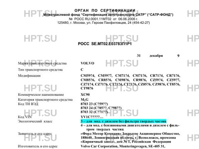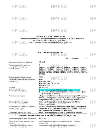 | Оборудование ТС | омыватель фар, система кондиционирования воздуха (хладагент R134a), иммобилайзер, система сигнализации с дистанционным управлением, подушки безопасности VOLVO С (перечень модификаций см. стр.1) |