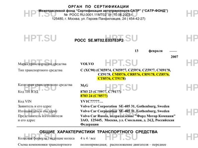 Заявитель Volvo Car Corporation SE-405 31, Gothenburg, Sweden