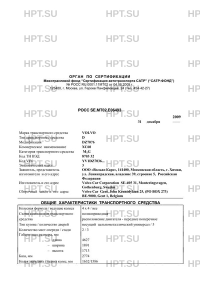 | Коммерческое наименование | D (DZ70?6) XC60 |