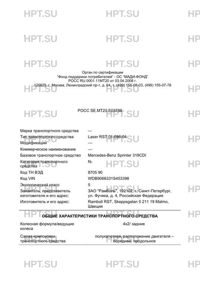 | Тип ТС | Laser RST 01-086-04 |
