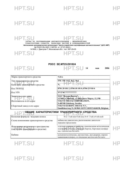 | Сборочный завод | VOLVO EUROPA TRUCK N.V., Smalleheerweg 31, B-9041 GENT OOSTAKKER, Belgium |