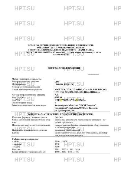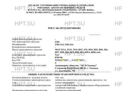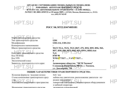 | Тип ТС | ЭUDS-114, UDS-214 на шасси MAN TGA, TGX, TGS (Н47, 47S, H54, H55 , H56, 56S, H57, H58, 58S, H72, H82, 82S, HW4, HH1) 6x6 |