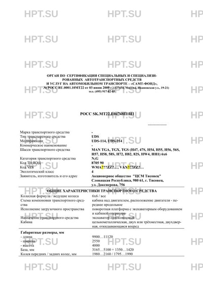 | Коммерческое наименование | ЭUDS-114, UDS-214 на шасси MAN TGA, TGX, TGS (Н47, 47S, H54, H55 , H56, 56S, H57, H58, 58S, H72, H82, 82S, HW4, HH1) 6x6 |