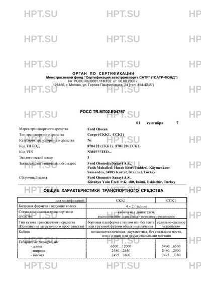 | Тип ТС | Cargo (CKK1, CCK1) |