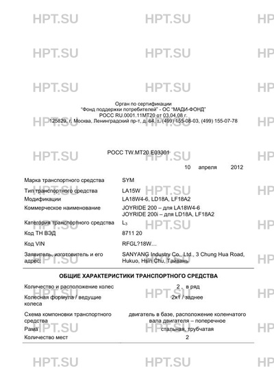 | Коммерческое наименование | JOYRIDE 200 - для LA18W4-6 JOYRIDE 200i - для LD18А, LF18А2 |