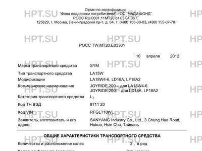 | Марка ТС | SYM |