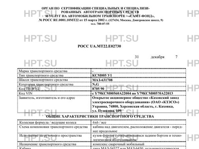 | Код VIN | с Y79КСМ00560А22004 по Y79КСМ005?0А22013 |