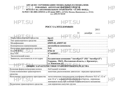 | Оборудование ТС | промежуточная опора карданной передачи - двухступенчатый редуктор, дополнительный отопитель кабины, предпусковой подогреватель двигателя "WEBASTO", дополнительный комплект ЗИП; повышенная защита от коррозионного воздействия внешней среды (для КрАЗ-650557-02) 4 |
