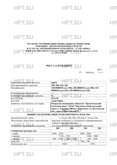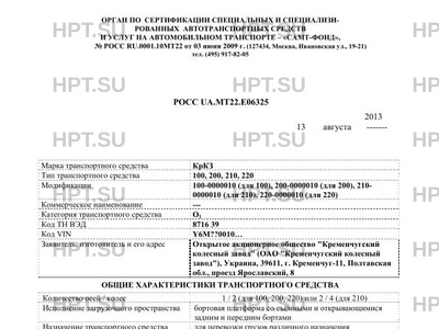 | Марка ТС | КрКЗ |