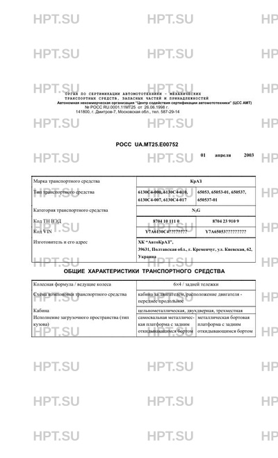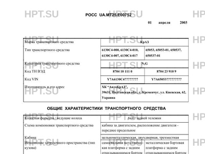 | Код ТН ВЭД | 8704 10 111 0, 8704 23 910 9 |