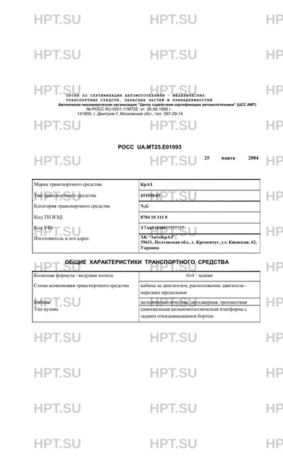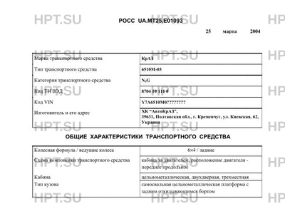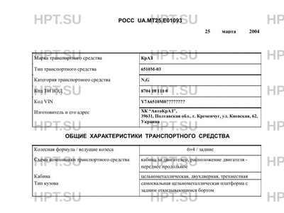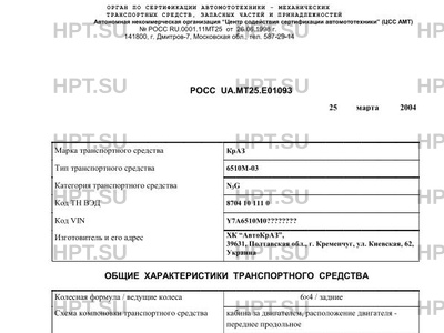 | Предприятие-изготовитель | ХК "АвтоКрАЗ", 39631, Полтавская обл., г. Кременчуг, ул. Киевская, 62, Украина |