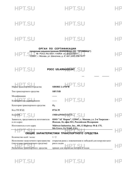 | Марка ТС | SHORE LAND'R |