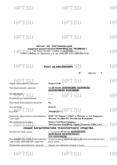 | Назначение | прицеп для перевозки катеров и лодок 2 для типов транспортных средств: SA-0?-MS200 SA-0?-PS-205V; SA-0?-PS-214 SA-0?-PS-190-197 TA-0?-MS200 |