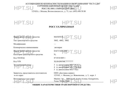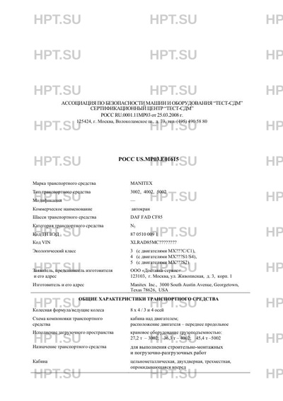 | Марка ТС | MANITEX |