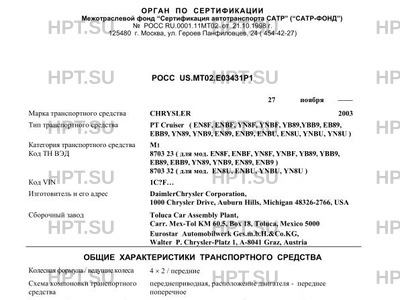 | Марка ТС | CHRYSLER 2003 |