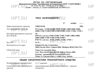 | Коммерческое наименование | PT Cruiser ( EN8F, ENBF, YN8F, YNBF, YB89,YBB9, EB89, EBB9, YN89, YNB9, EN89,… |