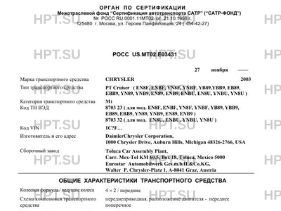 | Коммерческое наименование | PT Cruiser (EN8F, ENBF, YN8F, YNBF, YB89,YBB9, EB89, EBB9, YN89, YNB9, EN89, … |