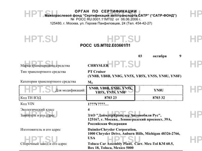 | Тип ТС | PT Cruiser (YN8B, YB8B, YN8G, YN5X, YB5X, YN5S, YN8U, YN8F) |