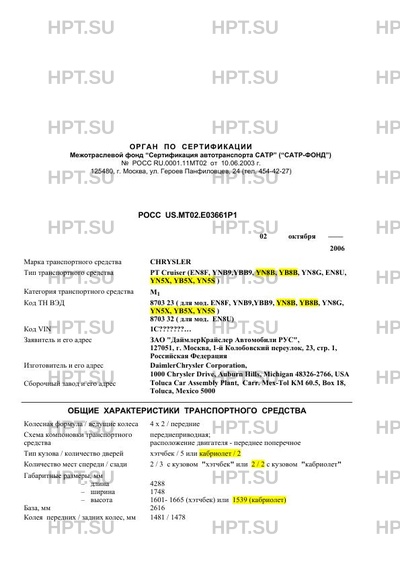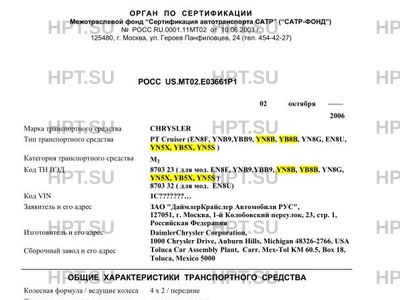 | Тип ТС | PT Cruiser (EN8F, YNB9,YBB9, YN8B, YB8B, YN8G, EN8U, YN5X, YB5X, YN5S) |