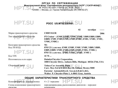 | Коммерческое наименование | PT Cruiser ( EN8F, ENBF, YN8F, YNBF, YB89,YBB9, EB89, EBB9, YN89, YNB9, EN89,… |