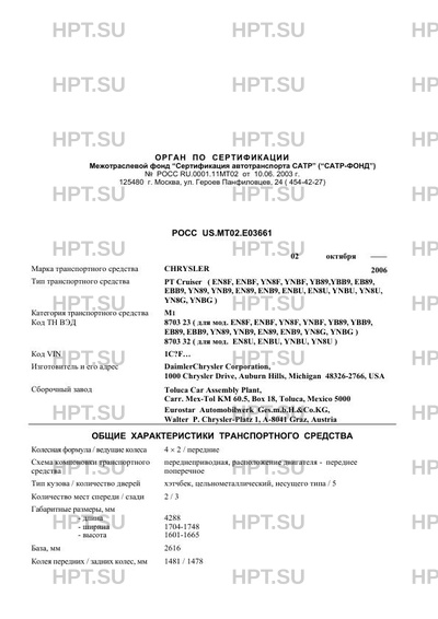 | Тип ТС | PT Cruiser ( EN8F, ENBF, YN8F, YNBF, YB89,YBB9, EB89, EBB9, YN89, YNB9, EN89, E… |