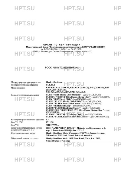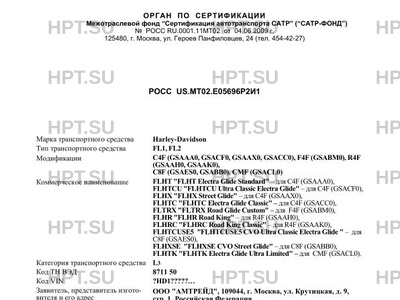 Коммерческое наименование FLHT "FLHT Electra Glide Standard" - для C4F (GSAAA0), FLHTCU "FLHTCU Ultra Cla…