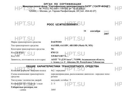 | Оборудование ТС | кондиционер (хладагент R134a), подушки безопасности для водителя и переднего пассажира, автомагнитола, электростеклоподъемники DAEWOO 4A11BD, 4A11BV, 4B11BD (Matiz M, MX) |