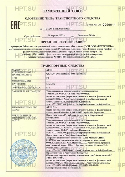| Код VIN | W A U ? ? ? F Y ? ? ? ? ? ? ? ? ? |