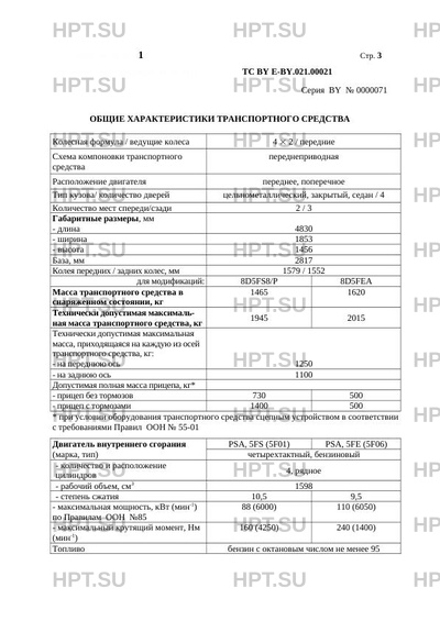 | Категория ТС | М1 (транспортные средства для перевозки пассажиров) |