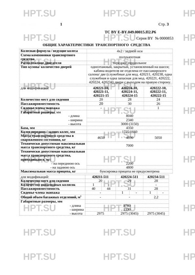 | Категория ТС | M3 (автобус класс I для модификаций 420211-511, класс II для модификаций 420224-10, 420224-11, 420224-15, 420222-10, 420222-11, 420222-15, 420224-511, 420224-511-01; класс III для модификаций 420234-511, 420238-511; класс В для модификаций 420221-10, 420221-11, 420221-15) |
