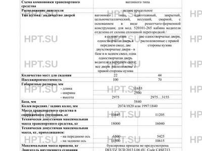| Тип кузова/кол-во дверей | вагонного типа, одноэтажный, закрытый, цельнометаллический, несущий, сварной, с основанием в виде решетчато-ферменной конструкции; для мод. 520101-265 кабина водителя отделена от салона сплошной перегородкой / в салоне: одна одностворчатая дверь в переднем свесе, две двухстворчатые двери - в базе и в заднем свесе, одна одностворчатая дверь водителя в переднем свесе; все двери расположены с правой стороны кузова две одностворчатые двери, расположенные с правой стороны кузова |