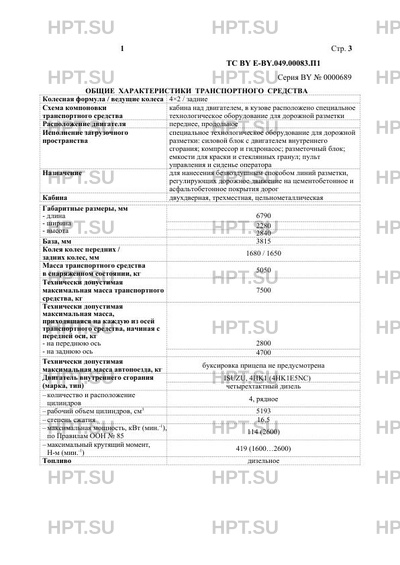 | Категория ТС | N2 (специальное транспортное средство - машина дорожная разметочная) |