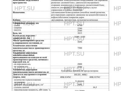 Оборудование ТС технологическое оборудование для нанесения дорожной разметки расположено в тентовом кузове транспортного средства 1. Силовой блок в составе 1.1. Приводной двигатель KUBOTA D1105 T-E3B (Германия) - номинальный крутящий момент, Н·м 46 - мощность, кВт 16,2