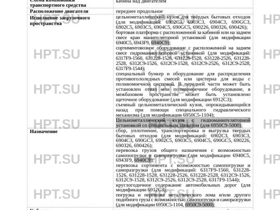 | Модификации | 6912С3); погрузка и перевозка металлического лома и/или другого подобного груза… |