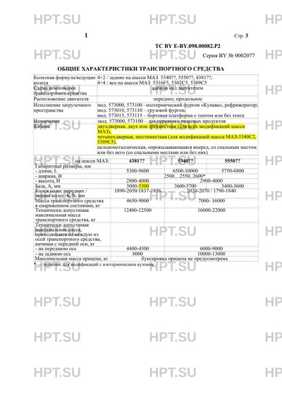 | Категория ТС | NN3 – для шасси МАЗ – 4381??, 5340??, 5550?? N3G – для шасси МАЗ – 5316F5, 5302С5, 5309С5 |
