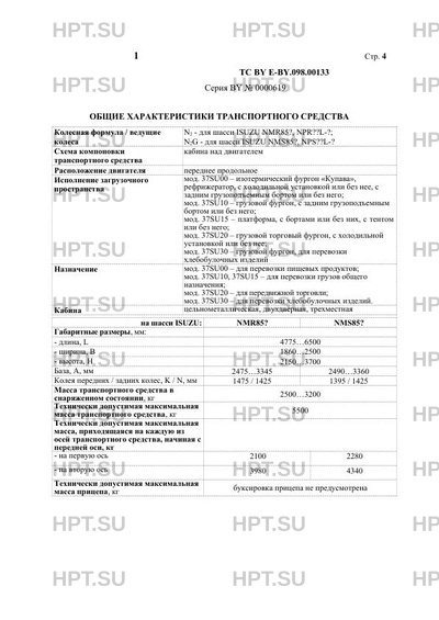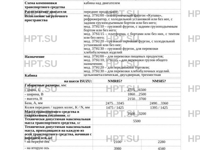 | Категория ТС | N2 - на шасси ISUZU NMR85?, NPR??L-?); N2G -на шасси ISUZU NMS85?, NPS??L-? |