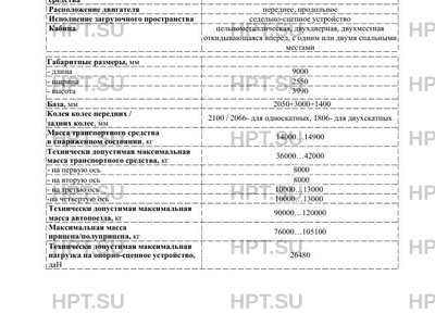| Исполнение загрузочного пространства | седельно-сцепное устройство |