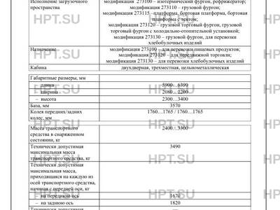 | Модификации | 273100, 273110, 273115, 273120, 273130 273100 - изотермический фургон, рефрижер… |