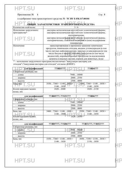 | Исполнение загрузочного пространства | цистерна металлическая круглой или эллиптической формы; цистерна металлическая круглой или эллиптической формы, изотермическая; цистерна металлическая круглой или эллиптической формы, изотермическая, с системой подогрева и (или) поддержания температуры |