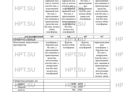 | Исполнение загрузочного пространства | платформа с бортами или без них, с каркасом под тент и тентом или без них, с пластиковой крышкой или без нее, с креплениями под машины и платформа с бортами или без них, с креплениями под машины и |