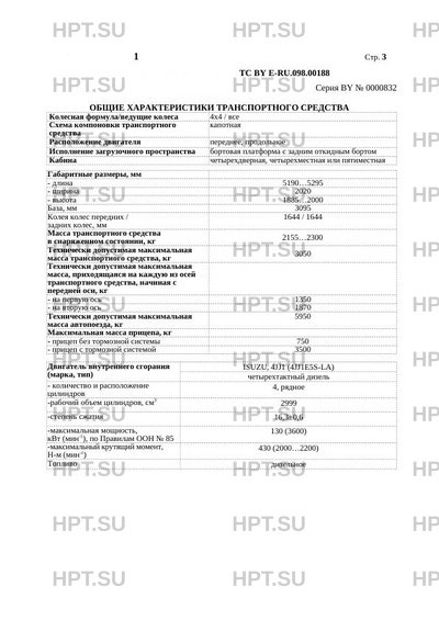 | Базовое ТС / Шасси | ISUZU D-Max TF |