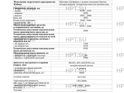| Исполнение загрузочного пространства | бортовая платформа с задним откидным бортом |