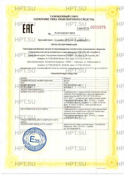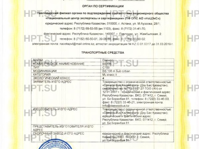 | Заявитель | Товарищество с ограниченной ответ "Daewoo Bus Kazakhstan" (Дэу Бас свидетельство №773-1917-27-ТОО (; юридический и фактич Республика Казахстан, ВКО, 071412, ул. Би Боранбая 81; телефон: 8 (722 факс: 8 (7222) 33-46-21; электронная lnfo@daewoobus.kz ственностью ^азак,стан); 4У) от зский адрес: г. Семей, >) 33-46-03, почта |