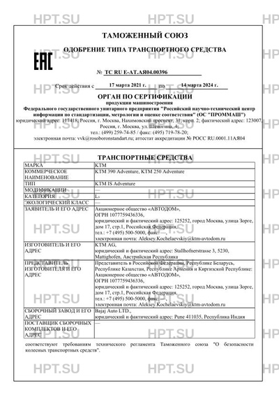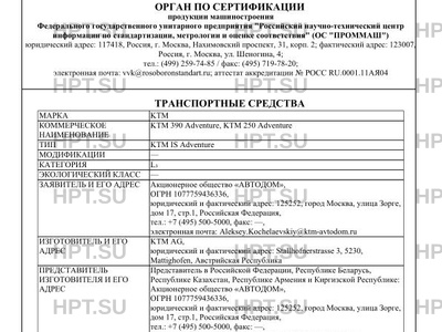 | Представитель изготовителя | Представитель в Российской Федерации, Республике Беларусь, Республике Казахстан, Республике Армения и Киргизской Республике: Акционерное общество "АВТОДОМ", ОГРН 1077759436336, юридический и фактический адрес: 125252, город Москва, улица Зорге, дом 17, стр.1, Российская Федерация, тел.: +7 (495) 500-5000, факс: -, электронная почта: Aleksey.Kochelaevskiy@ktm-avtodom.ru |