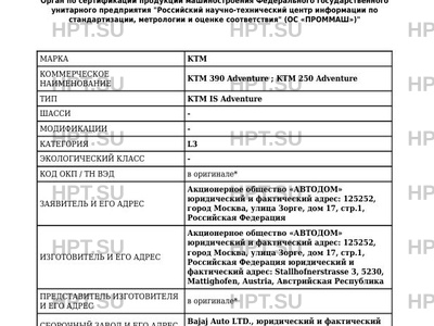 | Тип ТС | KTM IS Adventure ШАССИ |