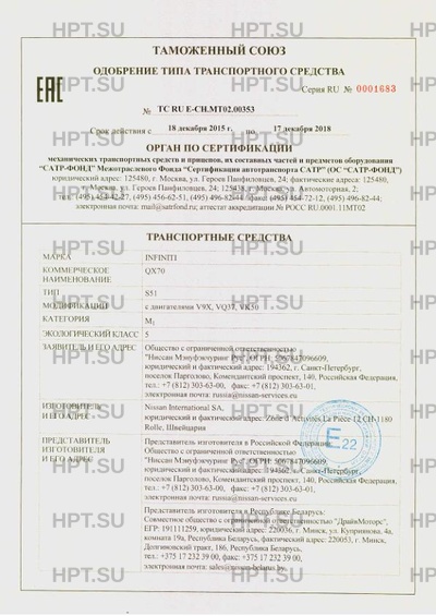 | Марка ТС | INFINITI |